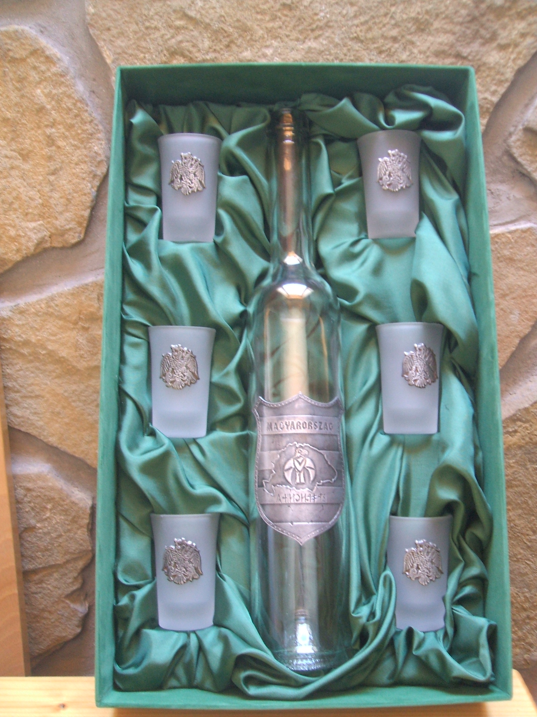 Diszes üveg ill pohárkészlet.Igényeseknek remek ajándék. -